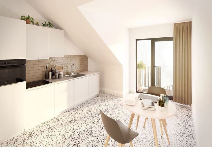 Een supermooi project met achter de strakke gevel 5 autonome studio’s van +/- 30 m² bruto met gemeenschappelijke stadstuin, fietsenstalling, kelder en afvalberging.