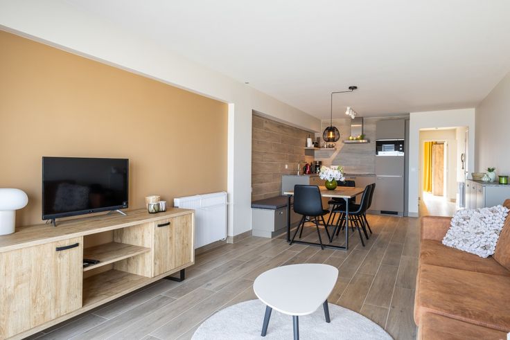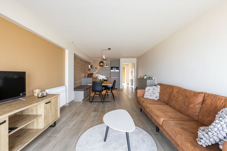 Indeling: Inkomhal, woonkamer, terras met zeezicht, volledig ingerichte keuken, badkamer met inloopdouche, 2 ruime slaapkamers, zuidgericht terras achteraan, apart toilet, ruime berging.