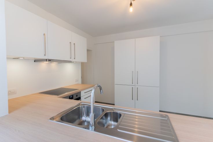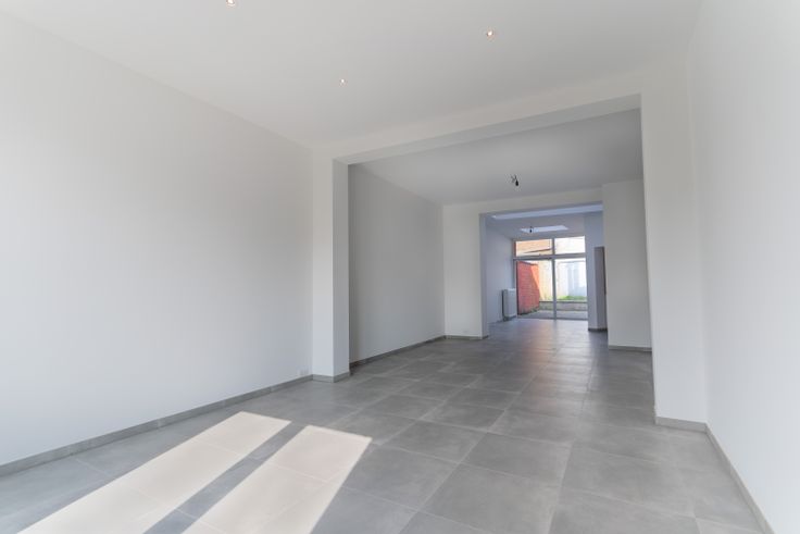 Au rdc : une cuisine et un coin repas de 23 m², un lumineux salon de 33 m², un local technique, un WC indépendant et une petite cour.