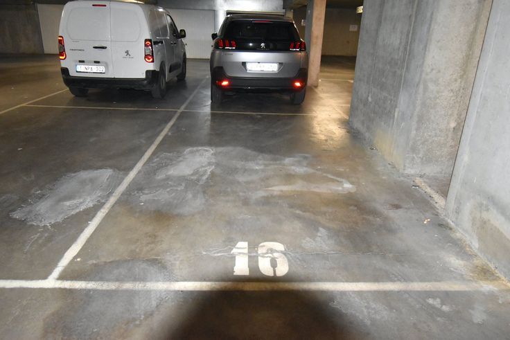 Parking te koop. Een genummerde parkeerplaats (16) . Vaste parkeerplaats voor 1 auto. Garage-ingang met afstandsbediening