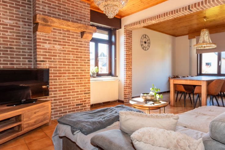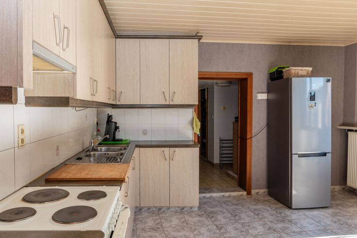 De leefruimte is open en heeft voldoende lichtinval. De keuken heeft directe verbinding naar de binnenkoer alsook de tuin, waardoor een aperitief zijn weg vlot naar buiten vindt.
