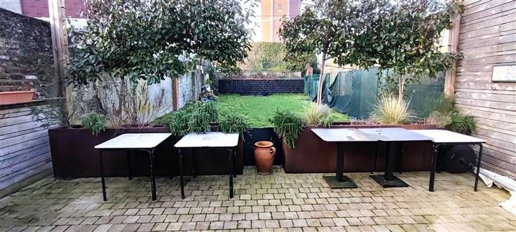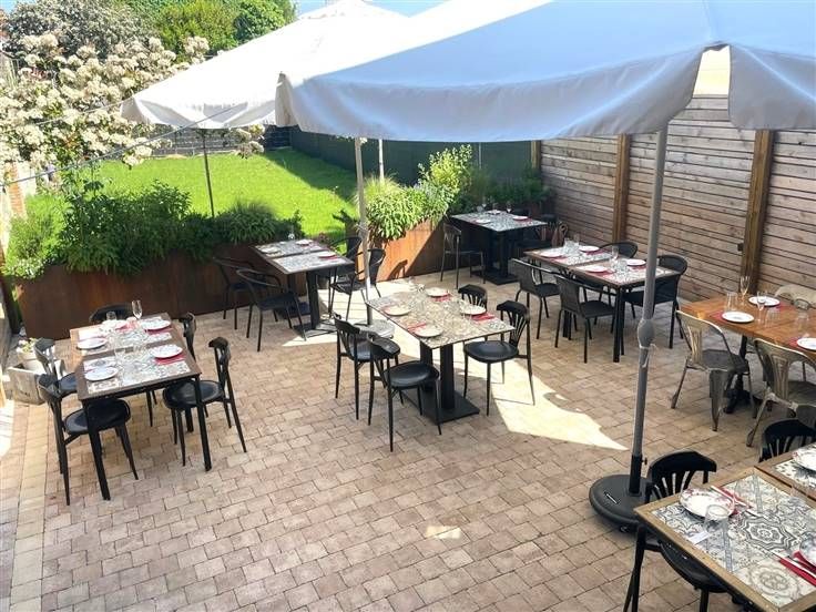 À l'extérieur, une charmante terrasse pavée offre une extension agréable de l'espaceintérieur, idéale pour accueillir des clients pendant les beaux jours.