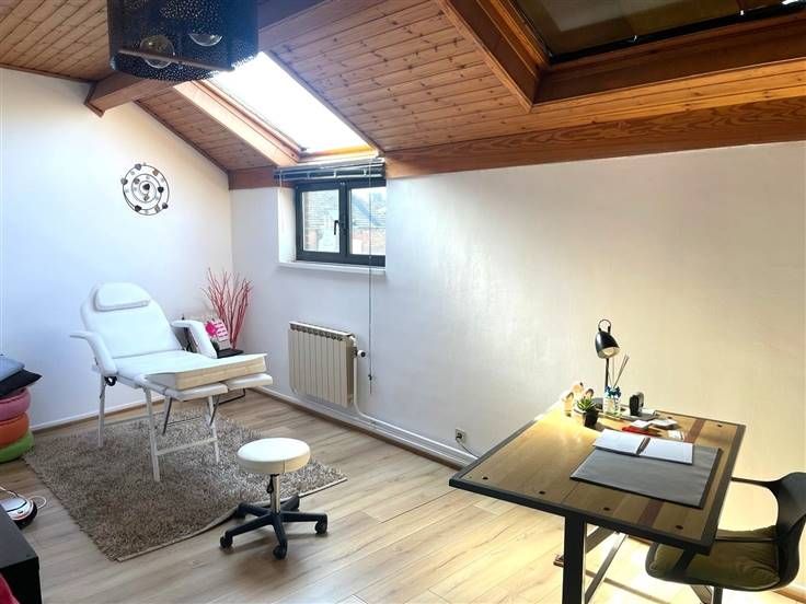 Au 1er étage, un espace de style salon de coiffure (libre à la vente), au 2ème, 2 bureaux loués (320 €/mois). 3 espaces utiles pour diversifier les activités ou sous-louer à d'autres professionnels. En sous-sols, sanitaires H/D, réserve et local poubelles.