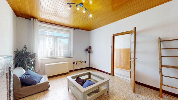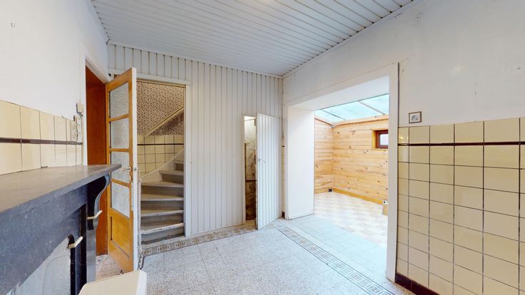 Faire offre à partir de 145.000 € - Proche des facilités dans une petite rue à sens unique, agréable maison avec courette et garage faisait autrefois partie de l'ancien presbytère de Perwez (seconde moitié du XIXème s.). A rénover, elle se compose, au rdc : hall d'entrée, salon, local cuisine, salle à manger, terrasse couverte avec poêle à pellets, petite cour, wc, grand garage avec accès piéton. Aux étages : hall de nuit, salle de douche avec lavabo et wc, deux chambres, vestibule avec espace de rangement, vaste grenier aménageable. En sous-sol : hall de cave et deux caves sous voussettes. Techniques : châssis PVC double vitrage, convecteurs électriques et poêle à pellets. La maison ne dispose pas de jardin.