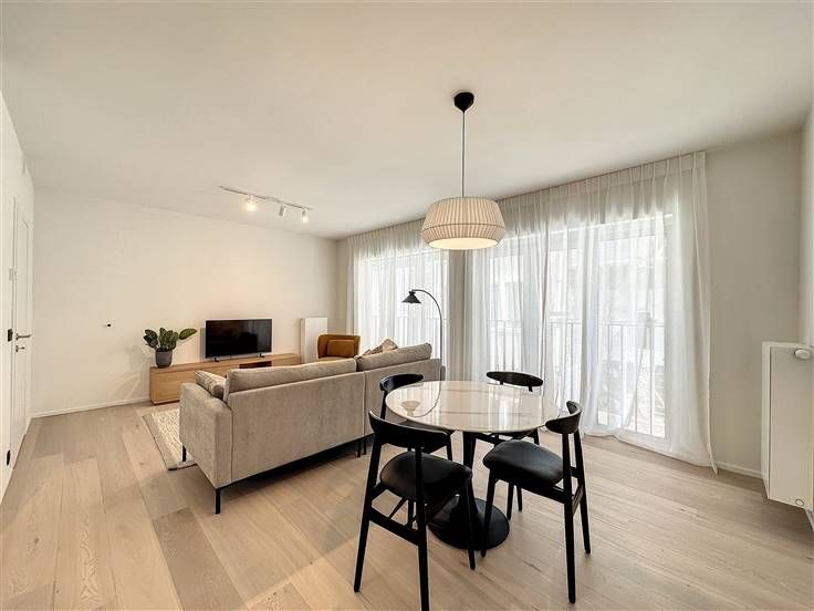 Bezoek dit pand met Nathalie: 0474/57.30.94 //. Dit lichte, gemeubileerde appartement met 2 slaapkamers van ongeveer 85 m² bevindt zich in de Marais-wijk, tussen Place de Brouckère en Rogier, op de eerste verdieping van een in 2023 gerenoveerd gebouw, aan het begin van de autovrije zone. Het ligt op wandelafstand van het stadscentrum, de Grote Markt, Place Sainte-Catherine, Dansaert en wordt omringd door talrijke winkels, restaurants, bioscopen en openbaar vervoer (tram, bus, trein, metro). Het appartement bestaat uit een inkomhal met ingebouwde kasten, een apart toilet en een wasruimte, een leefruimte van ongeveer 31 m² met een volledig uitgeruste open keuken (oven, kookplaten, afzuigkap, koelkast, vriezer, vaatwasser, magnetron), twee slaapkamers van ongeveer 14 en 10 m² met opbergruimte, een badkamer met bad en dubbele wastafel, een terras van ongeveer 19 m² en een kelder. Overal ligt parket, er is een individuele gasboiler, driedubbele beglazing en een videofoon. De provisiekosten bedragen 130€/maand (gemeenschappelijke delen, verzekering afstand van verhaal, onderhoud van de ketel). Sterke punten: uitstekende ligging, designmeubilair, veel lichtinval, hoogwaardig gebouw, recente constructie, fietsenstalling, afvalruimte. Energieprestatiecertificaat (PEB): B. Toegang tot het gebouw via Boulevard Adolphe Max. De vermelde afmetingen zijn informatief. Onmiddellijk beschikbaar! Mogelijkheid tot een huurovereenkomst op naam van een bedrijf. Minimum huurtermijn: 2 jaar.