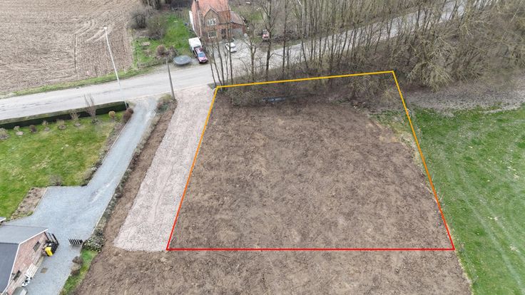 Te koop Terrain 1243m², 4 façades, plat et nivelé et endroit calme.