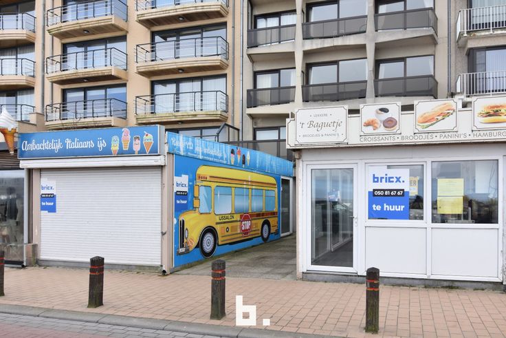 Deze twee handelszaken zijn met elkaar verbonden en bevinden zich op het uitstekende deel van de zeedijk. De verhuur omvat 2 naast elkaar liggende handelspanden. De twee panden komen achteraan samen in een U-vorm waar zich nog een studio, slaapzaal en 2 bergruimtes bevinden. De handelsruimtes omvatten een toonbank, verbruikszaal, berging en toilet. Deze handelszaken zijn intussen een vaste waarde op de Blankenbergse zeedijk, alle toonbankverkoop ijsjes, wafels, hamburgers , ..