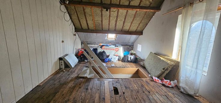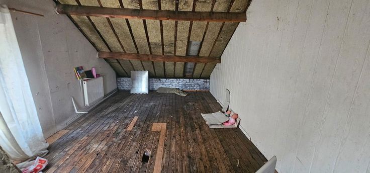 Grande maison d'habitation à vendre. Cette maison à rafraichir est composée au rez-de-chaussée d'un salon, salle à manger, cuisine équipée, salle de bains, grande buanderie et un très grand garage. Au 1er étage, la maison comporte 2 chambres à coucher avec possibilité d'en aménager une troisième. La maison dispose également d'un grenier aménageable en une grande chambre supplémentaire.