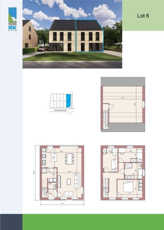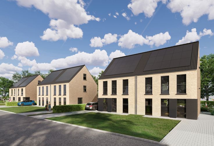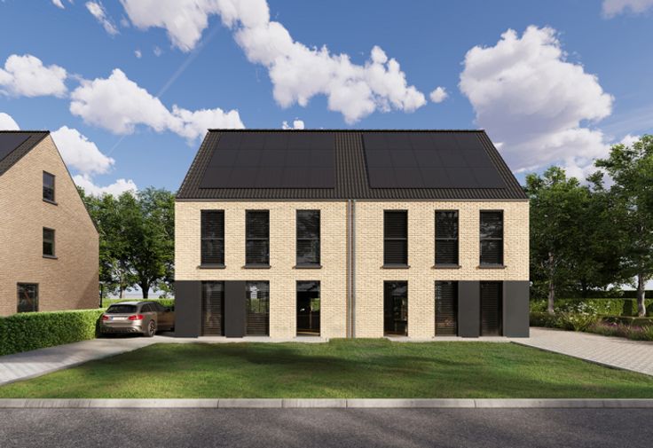 Aan de Sint-Apollonialaan in Mol zijn de werken gestart voor de bouw van 6 halfopen woningen met moderne architectuur, eigentijdse uitstraling en kwalitatieve afwerking. De ligging is één van de troeven: Een rustige omgeving met het centrum van Mol vlakbij. Energiezuinigheid staat voorop: Warmtepomp, vloerverwarming, zonnepanelen, ... waardoor u een maximaal Epeil van 10 krijgt. Snelle beslissers genieten van een lanceringsactie: Gratis laminaat in de slaapkamers en nachthal OF extra afwerkingsbudget voor uw keuken! Huisnummer 155a (lot 6) bevindt zich op een ruim perceel van 600m² en kent deze indeling: Inkomhal met gastentoilet. De leefruimte krijgt langs 3 gevels natuurlijk daglicht binnen en is opgedeeld in een zithoek, eetkamer en compleet uitgeruste leefkeuken met toegang tot de berging en wasplaats. Op de 1e verdieping de hoofdslaapkamer, 2 kinder/logeerkamers, en de badkamer met ligbad, douche, toilet en meubel met dubbele wastafel. Een vaste trap brengt u de ruime zolder, ideaal voor extra slaapkamer(s) of hobbyruimte. De tuinen worden voorzien van een terras en worden ingezaaid met gras. Op de scheiding worden beukenhagen geplant. Vooraan wordt een oprit aangelegd, zodat u daar uw wagen(s) kan parkeren. De geadverteerde prijs is exclusief aankoopkosten (BTW en registratierechten). Inclusief kosten, komt de totale prijs op +/- 445.000 EUR. Inbegrepen is de afwerking zoals dit voorzien is in het lastenboek. Snelle beslissers hebben bovendien nog inspraak!