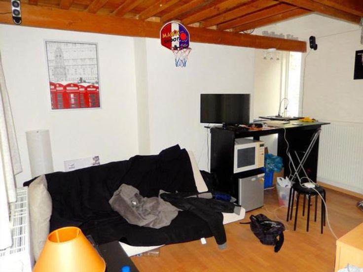 Contactpersoon : Kristof (kristof@vicusvastgoed.be) Vier zeer ruime studentenkamers tussen de 15 en 25 m2. Elke kamer op het eerste verdiep heeft ook een ruime mezzanine (kan als slaapgedeelte gebruikt worden). De gelijkvloerse kamer (groter dan 25 m2) heeft een buitenterras. Gemeenschappelijke sanitaire ruimte en keuken. Kan ook dienen als eengezinswoning op unieke ligging. Overal dubbel glas en volledig nieuw dak. Huidige huurinkomsten bedragen 1065 euro/maand.