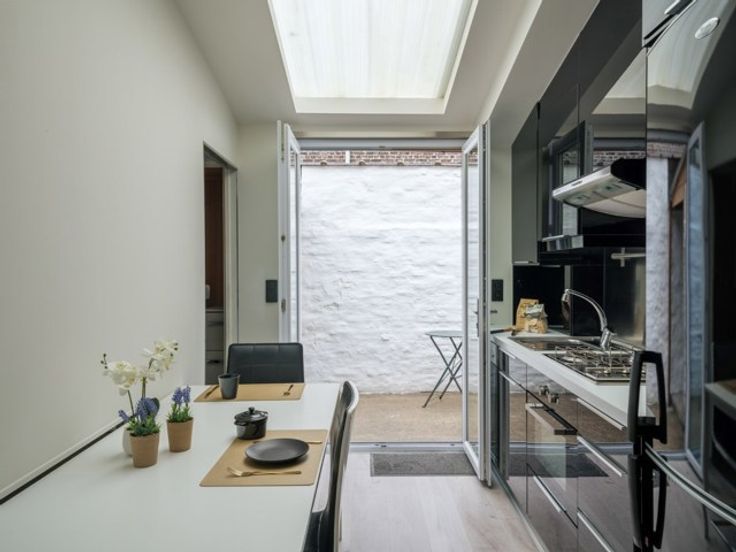CONTACT: Laura op 0473 41 35 62 of via info@vicusvastgoed.be Mobiscore: 9/10 EPC: C In de Achtermuide vinden we deze instapklare woning, nabij de R40 en op tien minuten fietsen van het station van Gent Dampoort. Vlotte verbinding met het openbaar vervoer en in de buurt van tal van voorzieningen (winkels, restaurants,...). Op wandelafstand van het historische centrum van Gent. We betreden de woning in de inkomhal die u toegang geeft tot de living en keuken. Één wand van de living is volledig uitgerust met ingemaakte kasten die u veel opbergruimte bieden. De achtergelegen keuken is ook volledig uitgerust met een vaatwasmachine, gasfornuis, dampkap, combi oven, frigo/diepvries en voldoende opbergruimte. Grenzend aan de keuken is er een gezellig zonnig stadskoertje. Op het gelijkvloers bevindt zich tevens de badkamer met dubbel wasmeubel, douchecabine en toilet. De eerste verdieping biedt plaats aan een eerste ruime slaapkamer met eigen lavabo en een op maat gemaakte bureau. Op de 2e verdieping bevindt zich de 2e slaapkamer tevens met eigen lavabo. Deze kamer is ook uitgerust met een ingemaakte kast. In beide slaapkamers werden de originele planken vloeren intact gehouden, hetgeen charme geeft aan de woning. Er is een mogelijkheid om de huur van een ruime naastgelegen garagebox met extra buitenruimte over te nemen. De extra buitenruimte grenzend aan de garagebox is privatief en geeft je de mogelijkheid tot het creëren van een grotere gezellig buitenruimte. EPC: C EK con