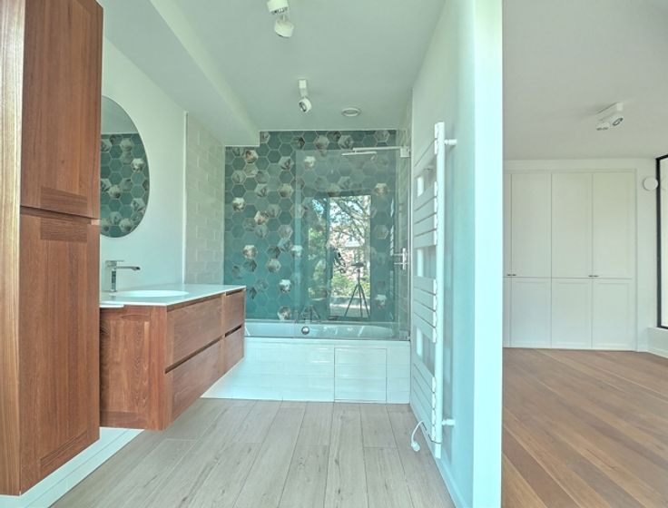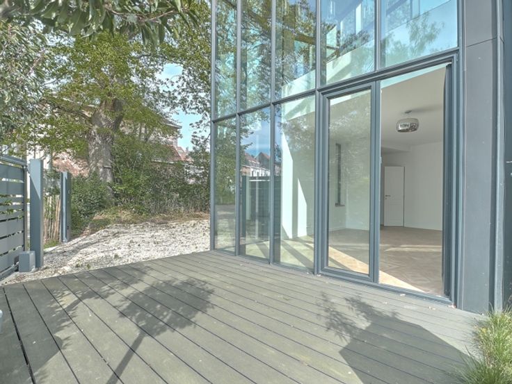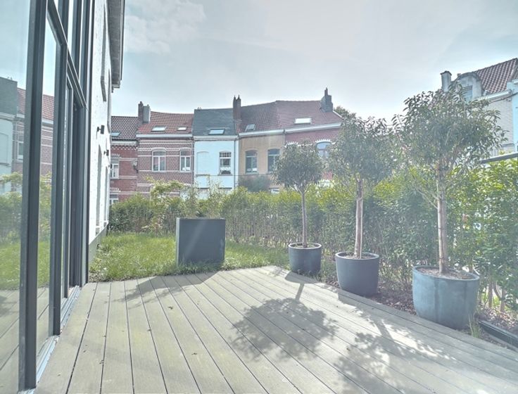 Située dans un quartier résidentiel calme et verdoyant, venez découvrir cette superbe maison rénovée en profondeur en 2019 par un architecte. Passez le portail sécurisé et dès l'entrée, vous serez séduits par ses beaux volumes, sa grande surface au sol et surtout par ses grandes fenêtres de 6m qui vous offrent une incroyable luminosité. Le hall d'entrée dispose d'un accès au garage/bureau avec prise pour véhicule électrique, de grandes armoires de rangement et d'une toilette séparée. Vous arrivez alors dans le spacieux living donnant sur une cuisine ouverte entièrement équipée et sur un coin salon ou salle à manger. À l'étage, vous trouverez deux belles chambres, une salle de douche, une deuxième toilette séparée et une suite parentale avec salle de bain jacuzzi, placards encastrés et une grande vitre sans tain, pratique pour profiter d'un maximum de luminosité tout en gardant de l'intimité. Au deuxième et dernier étage, se trouve une grande chambre avec accès à une grande terrasse de +-25m2 ensoleillée toute la journée. La maison est entièrement sécurisée et dispose de grandes caves avec espace buanderie, d'un beau jardin avec terrasse orienté Sud-Ouest, du chauffage au sol au RDC, d'une pompe à chaleur et d'une ventilation double-flux. Très faibles consommations d'énergie ! PEB : C. Située dans un quartier calme, vous êtes à proximité de nombreuses écoles (I.S.B.), transports en commun, du MIX Brussels et de commerces. Infos et visites : Laurent +32 478 24 45 85