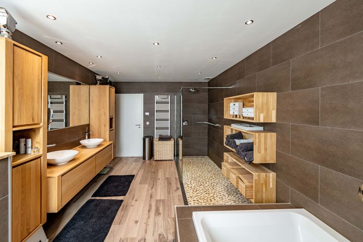 1er étage: hall, wc, vaste séjour avec cuisine hyper-équipée (four, four combi, taque céramique, hotte, évier, lave vaisselle, frigo américain, cave à vins, machine à café), cassette à bois double foyer, 2 chambres, dressing, salle de bains (baignoire 2 personnes, douche italienne, meuble double lavabo, wc), salle de douches (douche, meuble lavabo, wc), buanderie.