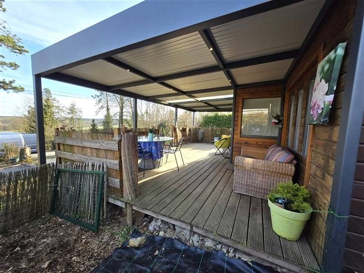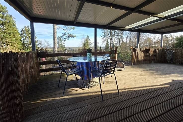 Immohali verkoopt rustig gelegen bemeubelde vakantiewoning 2 slaapkamers Groot overdekt terras & een open met luifel met weids uitzicht