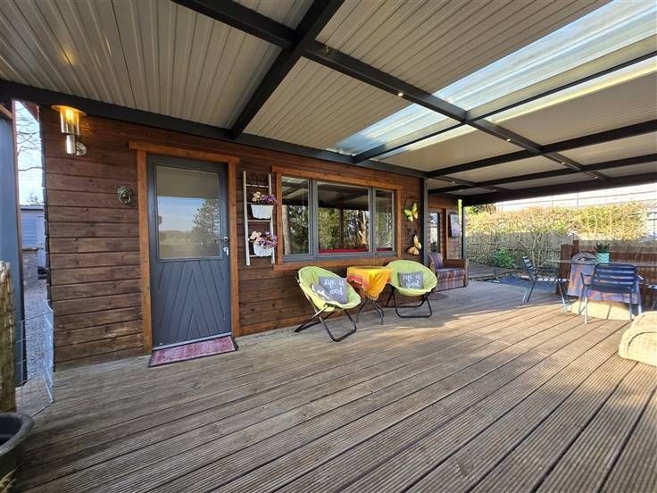 Extra’s: dakbedekking (2011) – picco bello onderhouden chalet – elektriciteit conform 2028 – overdekte & open terrassen met zonneluifel – omheind – tuinhuis – satelliet - autoluwe verkaveling