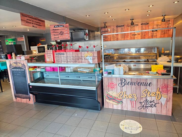 Il est possible d’acquérir le matériel et le contenu (comptoir frigo, tables inox, friteuses professionnelles, hottes, matériel horeca,…) moyennant un supplément de prix.