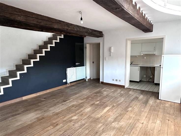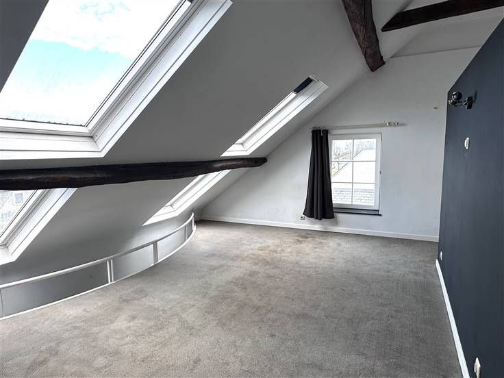 Sorry er is geen nederlandse vertaling beschikbaar. Idéalement situé, à la limite NAMUR - BOUGE, dans une ancienne ferme entièrement rénovée avec beaucoup de cachet située à proximité du centre-ville, des commerces, des bus, des écoles, des grands axes, dans un cadre de verdure, ... , au 2ème étage avec ascenseur, appartement - duplex de ± 77 m² (superficie PEB) et 60 m² habitables comprenant hall d'entrée, séjour +/- 24 m² a/ plancher en chêne, poutres en chêne, très belle cheminée, cuisine équipée (taques vitro., lave-vaisselle, hotte, évier + meubles et emplacement machine à laver); Etage: une chambre de ± 16 m² en mezzanine, salle de bains avec double lavabos, baignoire et toilette. Autres: facilité de parking, châssis en bois double vitrage, compteur électrique bi-horaire, chauffage électrique haute efficacité avec stockage de chaleur sans perte d'énergie, rev cad: 632 € - faibles charges de copropriété.... Libre à l'acte - Idéal pour jeune couple, investisseur (revenu locatif potentiel 700 €/mois), ... PEB E : 362 kWh/m².an (n° 20250324028119- EPC Total 27.879 Kwh/an). Informations indicatives et non contractuelles