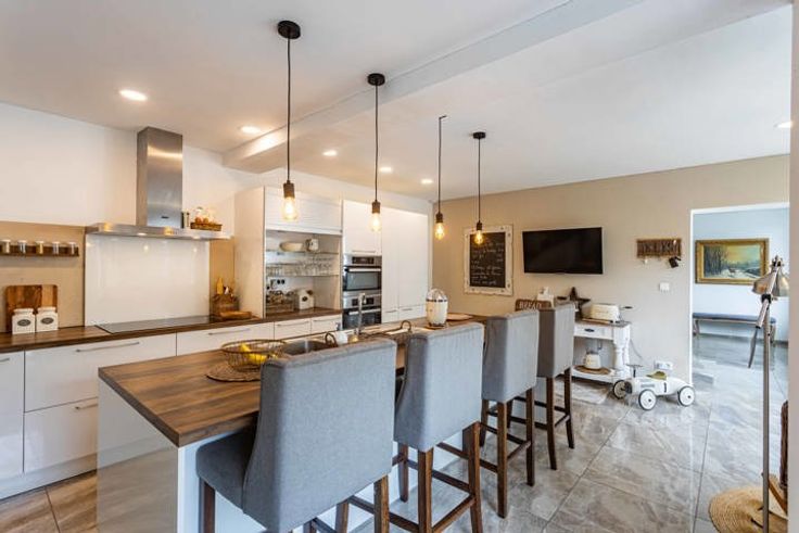Naast de loods een volledig gerenoveerde woonst, afgewerkt met kwalitatieve materialen. De woning geniet van veel natuurlijke lichtinval, 2 slaapkamers, een gezellig terras en een mooie tuin. Hier kan je in alle rust genieten van het buitenleven met uitgestrekte vergezichten