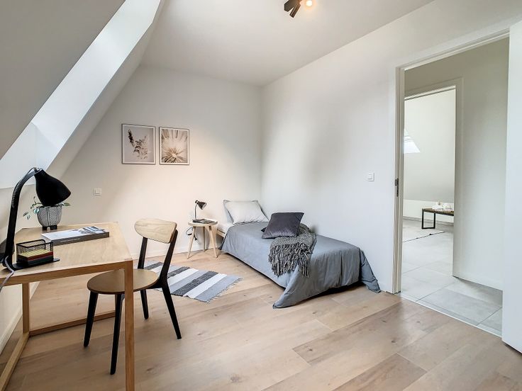 Lot 9 (verdieping) in woonproject In de Bres is een oase van rust gelegen in Genk. Deze dubbelwoonst met garage heeft een halfopen karakter en strekt zich uit over een perceel van 5a99ca, omgeven door een gezellig terras dat uitnodigt tot ontspanning. De bewoonbare oppervlakte meet 165,40 m². Binnenin biedt deze instapklaar afgewerkte woning een overvloed aan royale lichtinval dankzij hoge ramen. Er zijn twee ruime slaapkamers aanwezig.
