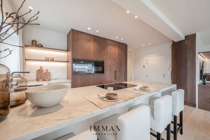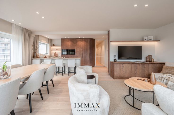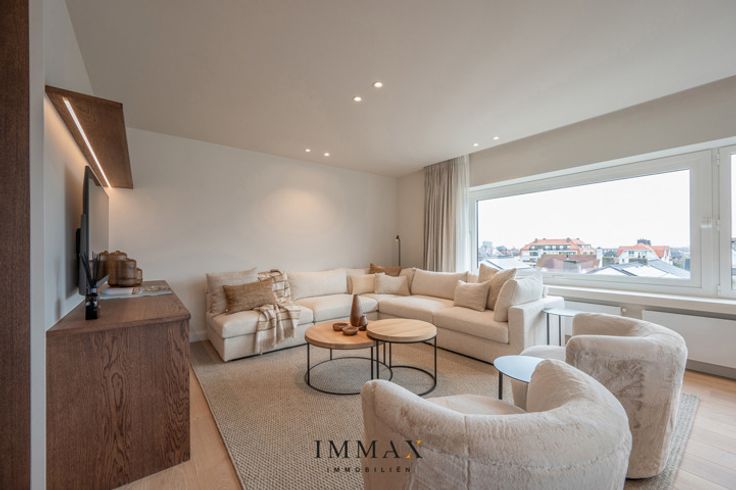 Dit prachtige en exclusieve appartement is ideaal gelegen nabij het Albertstrand te Duinbergen en combineert luxe, comfort en een adembenemend open zicht. Bij binnenkomst verwelkomt een stijlvolle inkomhal met een apart gastentoilet u in een lichtrijke en ruime leefruimte, waar de eetkamer naadloos overgaat in een hoogwaardig afgewerkte open keuken. De doordachte indeling omvat drie ruime slaapkamers, waarvan twee met een ensuite douchekamer, aangevuld met een extra afzonderlijke douchekamer voor optimaal comfort. Daarnaast beschikt het appartement over een gemeenschappelijke fietsenberging met vijf fietshaken. Voor extra gemak is er de mogelijkheid tot aankoop van een ruime parkeerplaats binnen dezelfde residentie. Dit exclusieve appartement vormt de perfecte uitvalsbasis voor wie op zoek is naar een luxueuze woonervaring aan de kust. Aarzel niet om ons te contacteren voor meer informatie: tel. : 050 62 44 14 of via knokke@immax.be
