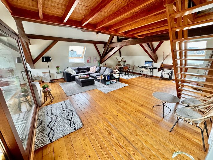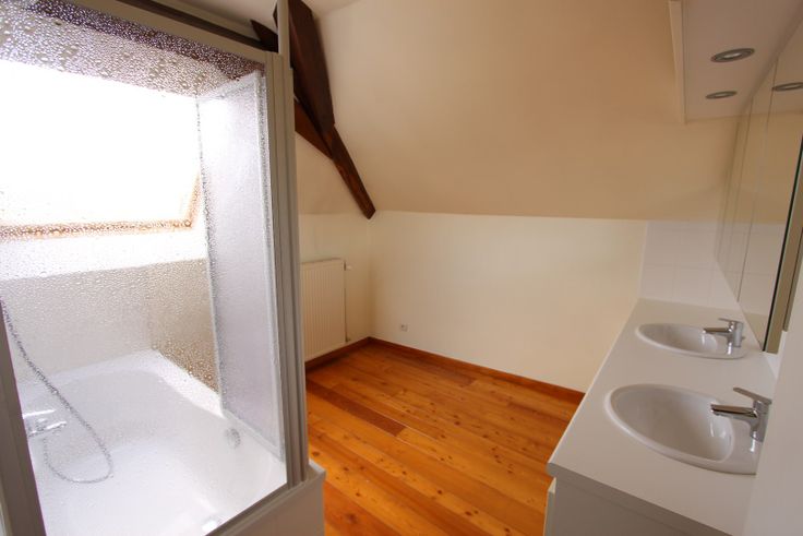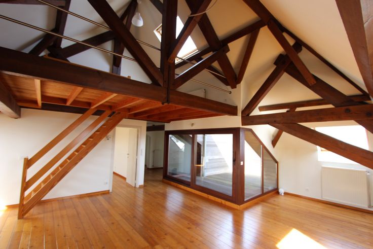 Ruime leefruimte (houten vloeren) 45m2 met mezanine 12m2en terras 12m2 met zicht op de torens. Afzonderlijke keuken, volledig uitgerust. 1 slaapkamer Badkamer met bad, wc en lavabo