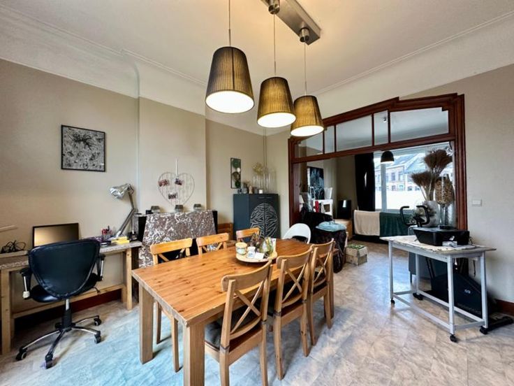 BEL IMMEUBLE de CARACTERE à vendre idéalement situé à JUSLENVILLE, dans la très prisée commune de THEUX . Le bien bénéficie d'un emplacement stratégique à proximité de toutes les commodités (bus, train, commerces, écoles etc.). Le bien est composé comme suit: DUPLEX n°1 : REZ: hall d'entrée commun, lumineux séjour avec salon (17m²)et salle à manger (18m²), cuisine ancienne (évier, micro-ondes, frigo, four, lave-vaisselle)(9m²). NIV -1: hall de cave, cave de rangement (4m²), local technique (14m²), chambre à coucher (9m²)avec petite salle de bains (douche, évier)(2m²), WC (1m²). L'accès au superbe jardin orienté S-O se fait par les caves. DUPLEX n°2: NIV +1: palier, agréable séjour avec salon (18m²) et salle à manger (17m²), cuisine à prévoide bains ancienne (armoire, WC, bain/douche) (6m²). NIV +2: palier, 2 chambres à coucher (15m²² et 16m²), un bureau (7m²). Techniques: Maison de 1931, châssis DV Aluminium 88, électricité bi horaire (2 compteurs séparés), chauffage central gaz de ville commun, chaudière Niagara Delta, 2 compteurs d'eau séparés, RC= 651€, électricité non conforme, PEB D=292 kWh/m².an - 29168 kWh/an (ref n°20250116021839) et PEB E="370" Kwh/m².an - 35604 kWh/an (ref n°20250116022087). Le RDC est actuellement loué à faible revenu, garantissant ainsi un revenu locatif régulier. L'étage est libre d'occupation, offrant un beau potentiel d'aménagement. Infos et renseignements en l'étude NOTALIS ( Guyot & Cremer): 087/77 10 72 !