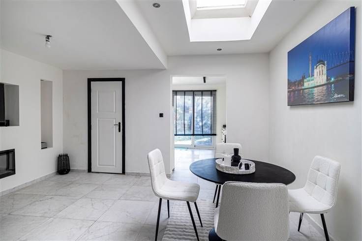 Instapklare woning (129 m²) met 3 slaapkamers en zuid-georiënteerde tuin (90 m²) in Wilrijk. De centrale ligging vlakbij het Valaarpark maakt dat het pand een uitstekende mobiscore behaalt. Het openbaar vervoer is goed vertegenwoordigd en de A12 en andere verbindingswegen bereik je in slechts enkele minuten. De woning is doorheen de jaren grotendeels vernieuwd, zodat je hier zonder grote werken je intrek kan nemen. Zo is het dak conform geïsoleerd en is ook de elektriciteit conform. De ramen beschikken over dubbele PVC-beglazing en zijn voorzien van handmatige rolluiken. Je komt binnen in de inkom-/traphal, die rechts toegang biedt tot de leefruimte. Vooraan bevindt zich de woonkamer (25 m²) met aansluitend de lichtrijke eetkamer (16 m²) en vervolgens de keuken (10 m²) met basisuitrusting aan de achterzijde. Ook de badkamer (6 m²) met lavabomeubel, handdoekdroger, douche en wc is te vinden op het gelijkvloers. Vanuit de keuken heb je via een schuifdeur toegang tot de tuin (90 m²) met zuid-oriëntatie. Een eerste slaapkamer van 9 m² is te vinden op de tussenverdieping en de overige 2 volwaardige slaapkamers van 13 m² en 17 m² zijn gelegen op de eerste etage. Tot slot beschikt het pand nog over een ruime kelder (36 m²). Ben je op zoek naar een instapklare woning op een centrale locatie? Mis deze kans niet! Bewoonbare opp. 129 m² ref.: bruto vloeropp. Voor meer info of een gratis schatting surf naar www.hansimmo.be