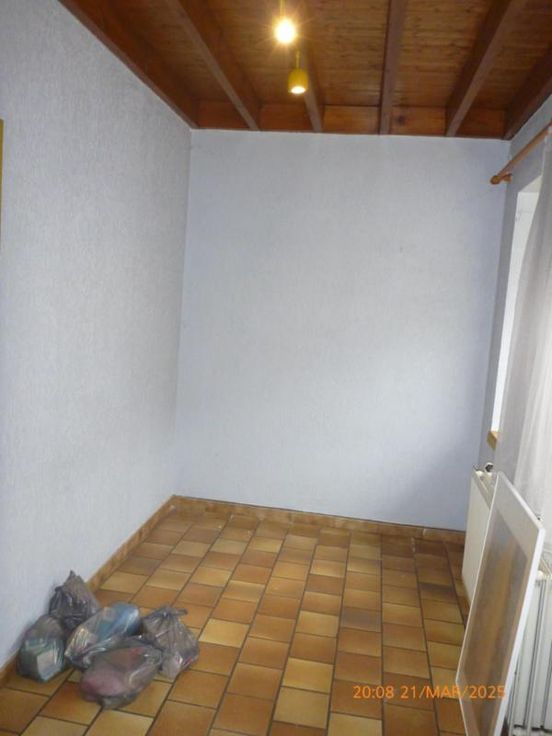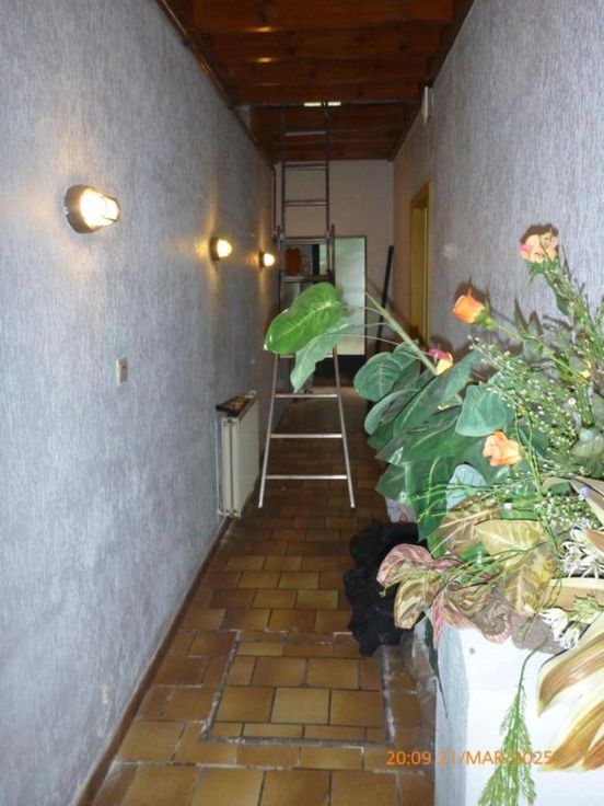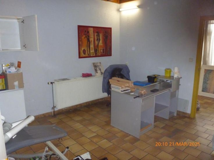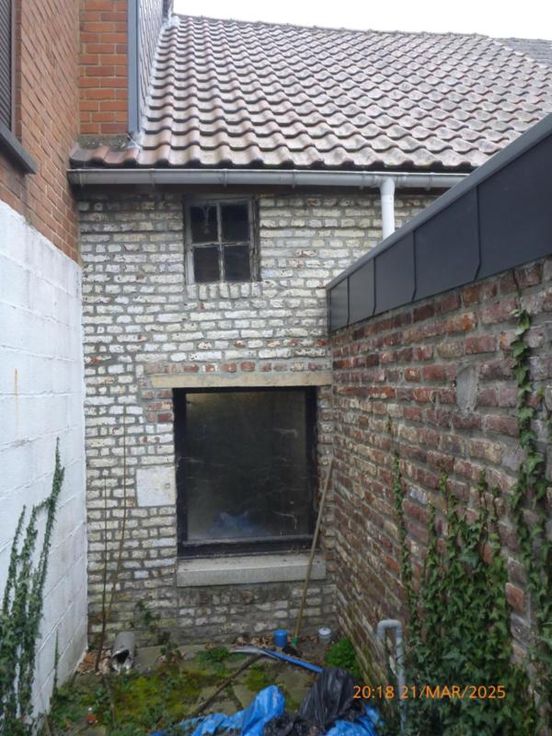 Rez : couloir, W.C, cuisine semi-équipée, bureau, buanderie. Etage : un grenier aménageable en deux chambres et une salle de bain. Raccord : eau, gaz de ville, électricité et égout, chauffage central au gaz, double vitrage en parti, PEB 20250324027624 cat : F Contenance : 1 are 50 centiares. Revenue Cadastral : 215 €. Prix : faire offre à partir de 85.000 euros