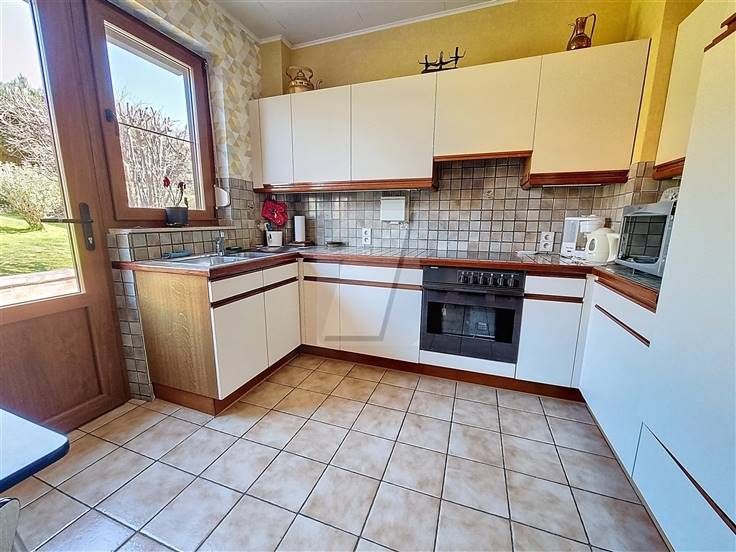 Uitstekend halfvrijstaand huis, zeer goed onderhouden: woonkamer, ingerichte keuken, 3 slaapkamers, badkamer