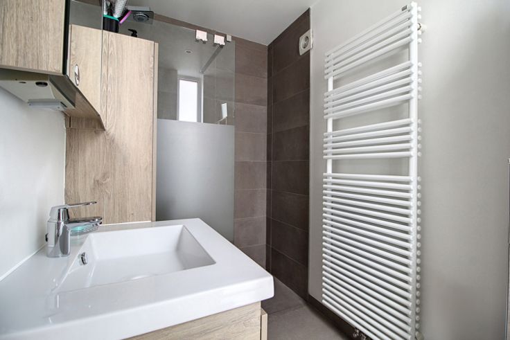 Au REZ : Un lumineux et spacieux salon de 25m² avec insert au gaz, un espace bureau, une grande cuisine équipée ouverte (plaque de cuisson au gaz, hotte, four, double évier, lave-vaisselle, nombreux rangements intégrés) avec salle à manger de 14m², une salle de bains récente composée d’une douche à l’italienne, d’un meuble lavabo, d’un WC suspendu et d’un sèche-serviette.