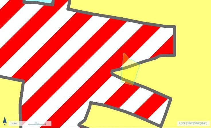 Terrain de 47 ares en partie zone d'habitat à caractère rural, en partie en zone agricole, dans une petite rue peu fréquentée.