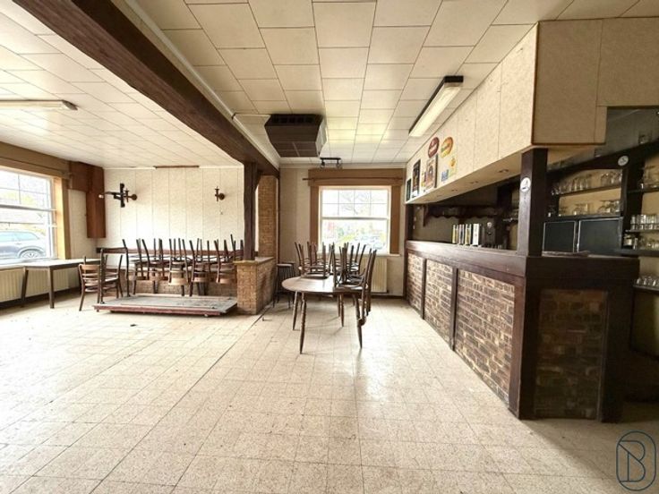Goedgelegen HORECAZAAK met GROTE achterliggende FEESTZAAL van 240m2. Mogelijkheid maken extra woonst boven. VEEL POTENTIEEL.