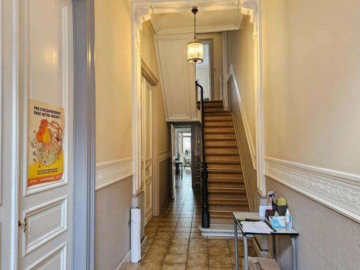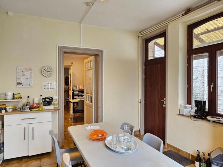 Maison de caractère deux façades avec jardin comprenant : Sous-sol : caves Rez-de-chaussée : hall, salon, salle à manger, cuisine et arrière-cuisine. Entresol : une chambre et wc. Etage : hall de nuit, trois chambres (dont une petite). Comble : grenier aménageable. Extérieur : jardin. Contenance totale : 3 ares 20 centiares RC : 505 euros PEB G : 595 kWh/m².an.
