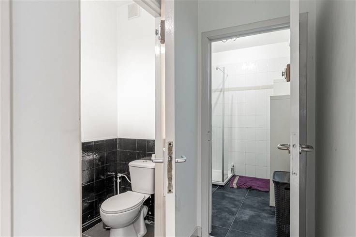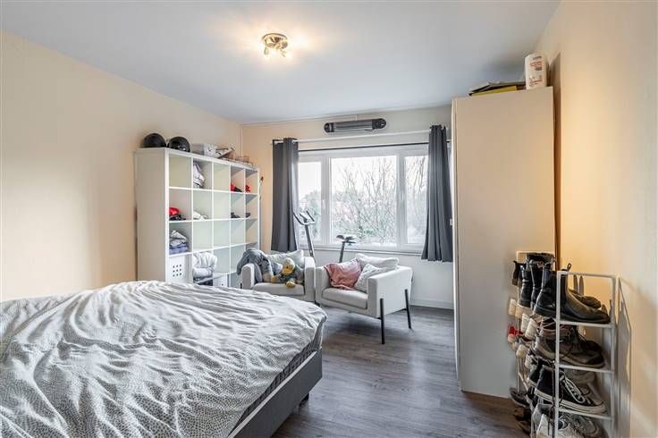 Instapklaar appartement (100 m²) met 2 slaapkamers, overdekte autostaanplaats en 2 terrassen in Edegem. In de Buizegemwijk nabij het dorpscentrum is het aangenaam wonen en geniet je van een vlotte verbinding met het openbaar vervoer, de fiets en de auto. Het appartement bevindt zich op de bovenverdieping van een gebouw van 2 hoog, waarvan het dak in 2021 conform geïsoleerd is. De vaste kosten bedragen €55/maand en omvatten water, blokpolis en onderhoud en elektriciteit van de gemene delen. In het appartement is de elektriciteit AREI-conform en in 2020 is er hoogrendementsbeglazing (PVC) geplaatst, dat voorzien is van vliegenramen. Je komt binnen in de hal met vestiairehoek. Vooraan situeert zich de woonkamer (31 m²) met aansluitend de aparte keuken (7 m²) met basisuitrusting. De leefruimte geeft uit op een eerste, zuid-georiënteerde terras (7 m²). Centraal in het appartement treffen we de badkamer (4 m²) met lavabomeubel en inloopdouche. De wc is apart. Ook is er een extra kamer van 6 m² aanwezig, die veel invulmogelijkheden biedt. Aan de achterzijde bevinden zich de 2 volwaardige slaapkamers van 10 m² en 18 m², waarvan de kleinste toegang biedt tot het tweede terrasje (2 m²) met noord-oriëntatie.
