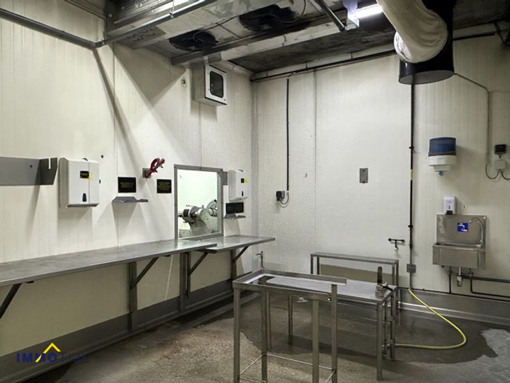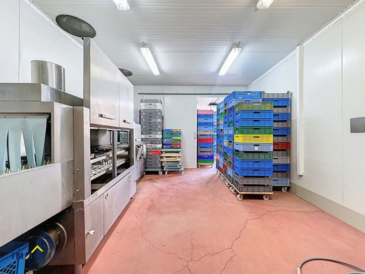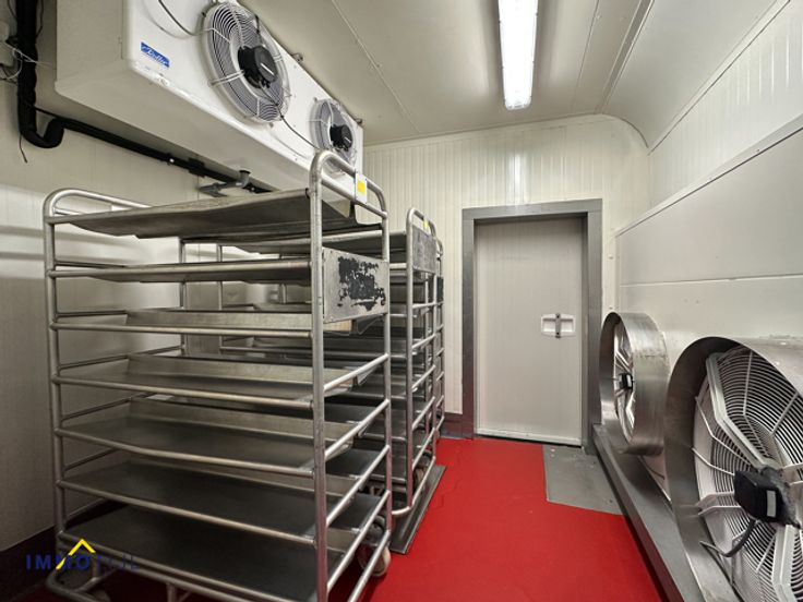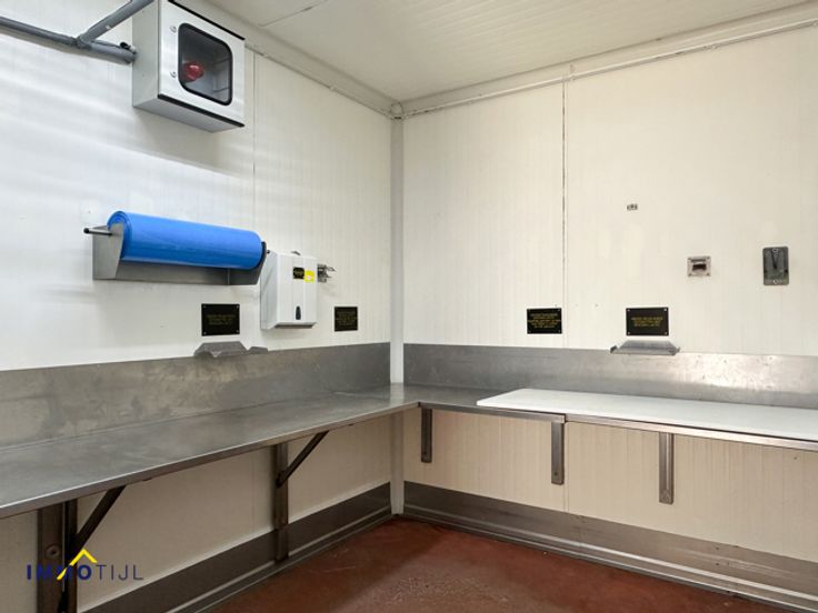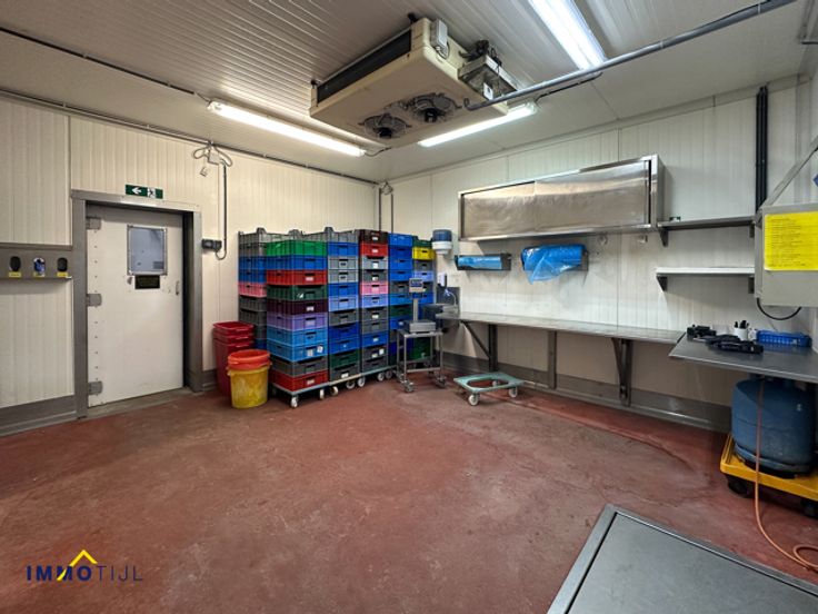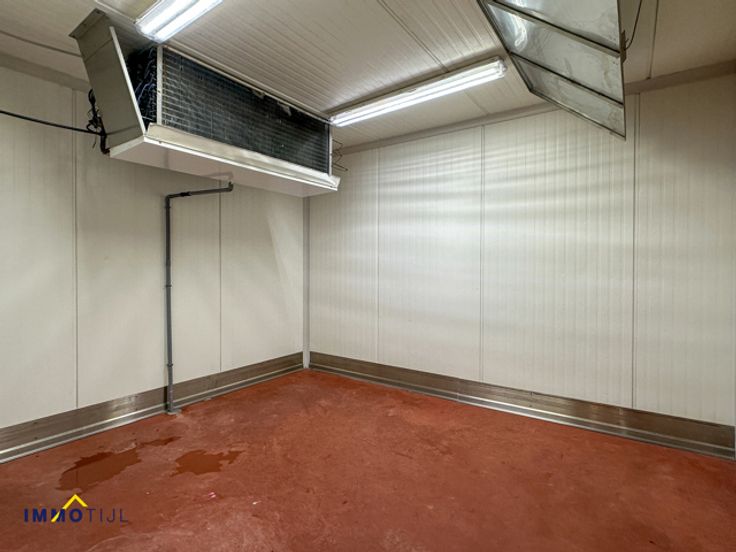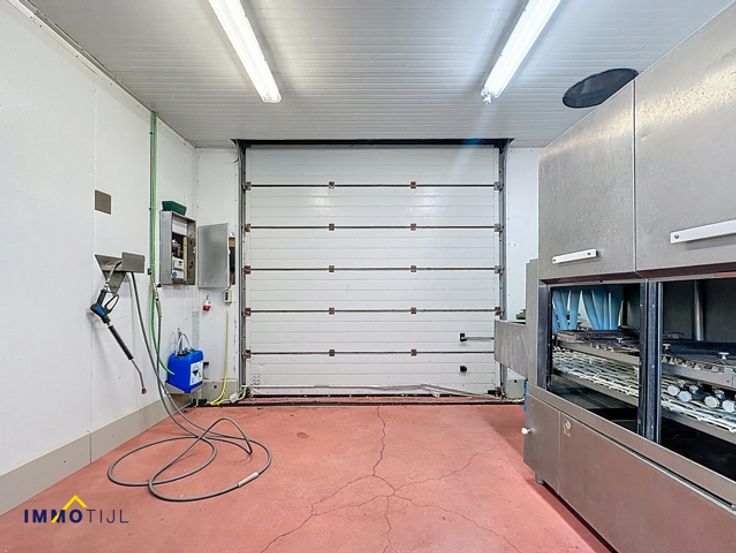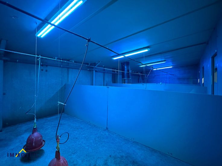 De ruimte is efficiënt ingedeeld met een polybetonvloer, sectionale poorten en afwasbare wanden. Er zijn zes frigo’s, twee toiletten, een wasplaats, bureaus, een kleedkamer, een refter, een loskade en diverse opslagruimtes. Voorzien van o.a.ledverlichting, een voedersilo van vijf ton, camerabewaking, ...