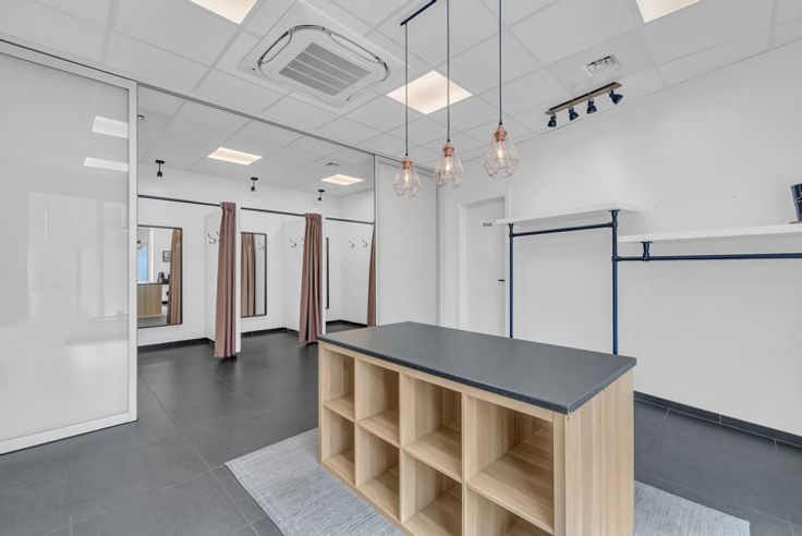 Deze veelzijdige handelsruimte van 133 m² is gelegen op een strategische locatie en biedt tal van mogelijkheden. Voorheen in gebruik als kledingwinkel, leent het pand zich perfect voor soortgelijke commerciële doeleinden, maar ook voor vrije beroepen of als bureauruimte.