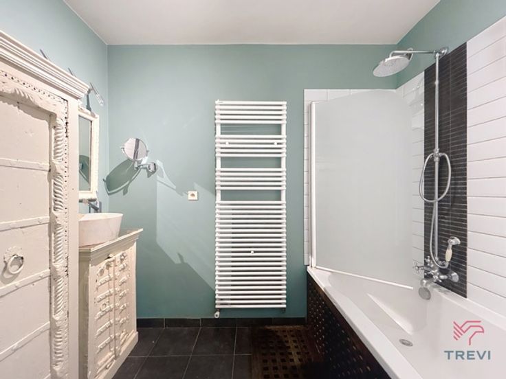 MOLENBEEK-SAINT-JEAN, in een kleinschalig condominium, vlakbij het Regionaal Park Scheutbos en alle voorzieningen, mooi appartement met 1 slaapkamer gelegen op de begane grond. Indeling: inkomhal, woonkamer van 32m² met toegang tot de tuin van 60m² (op 2 niveaus), terras van 10m², ingerichte keuken, slaapkamer van 13m², badkamer, apart toilet, berging en kelder. Alle oppervlaktes zijn ter informatie. EPB: G, 76kg/ (m²/jaar)*. Voorziening voor lasten: 50€/maand (gemeenschappelijk). VERPLICHTE parkeerplaats: 100€/maand. Onmiddellijke beschikbaarheid. TREVI LOCATIE-INFORMATIE: 02.340.24.94
