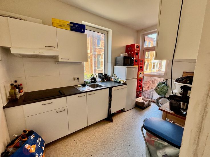 Ruim appartement met 2 slaapkamers en groot dakterras. Dit appartement is gelegen in het centrum van Leuven op 2 min wandelen van de Vismarkt en Grote Markt. Indeling: inkomhal, ruime living met zicht op de Dijle, keuken, wc, badkamer, 2 ruime slaapkamers (20 en 16m2) en een zeer groot zonnig dakterras (40m2) Kom snel kijken en bel naar Immo-M 0468 22 53 22 of mail naar info@immo-m.be Opgelet: Geen studenten. Renovatieplicht: onbekend