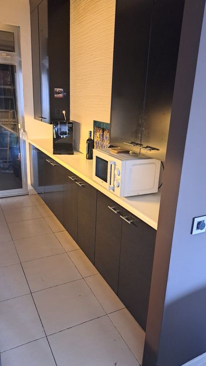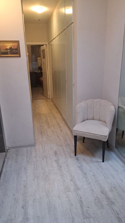 De ruime en lichte woonkamer vormt het hart van het appartement. Dankzij de grote ramen valt er veel natuurlijk licht binnen, wat zorgt voor een aangename en open sfeer. De woonkamer is ruim genoeg om zowel een comfortabele zithoek als een eethoek te plaatsen. De afwerking is modern met hoogwaardige materialen, zoals een mooie laminaatvloer en neutrale wanden die een warme en uitnodigende uitstraling geven.