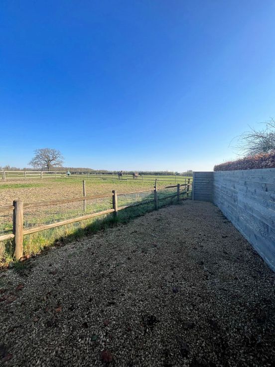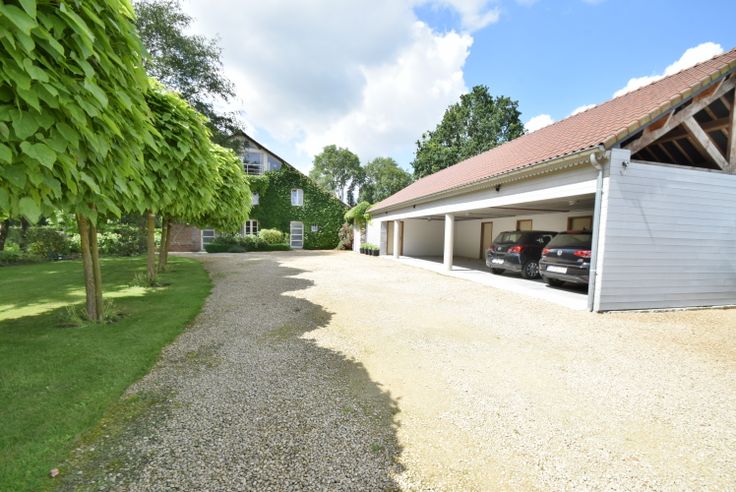 Une place de parking sous carport doté d'une remise individuelle et terrasse extérieure non attenante à l'appartement avec vue sur la campagne.