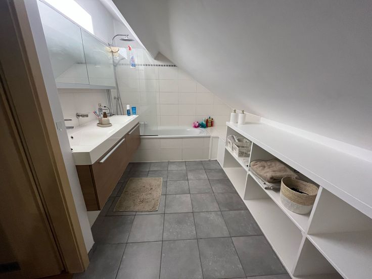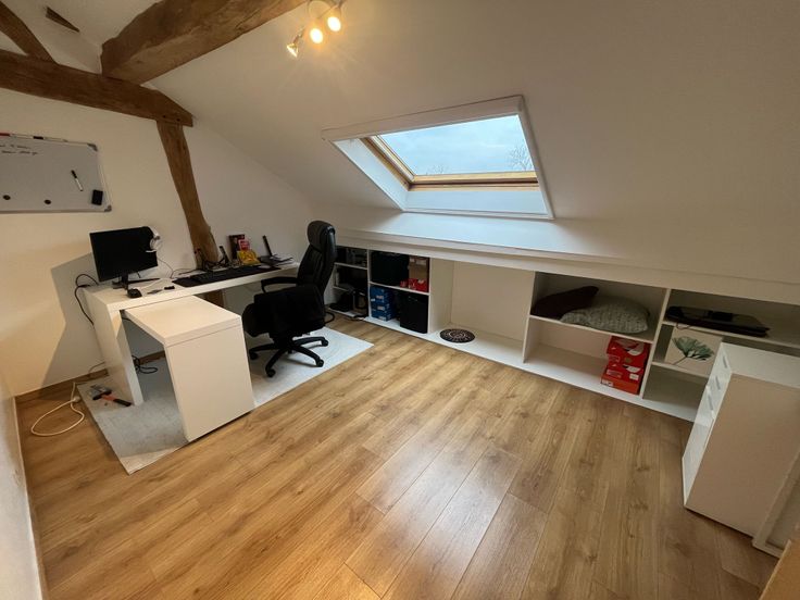A l'étage, deux chambres équipées de rangements sous combles , un hall et une salle de bain avec toilette.