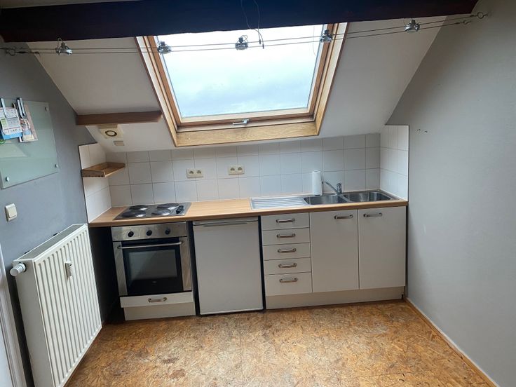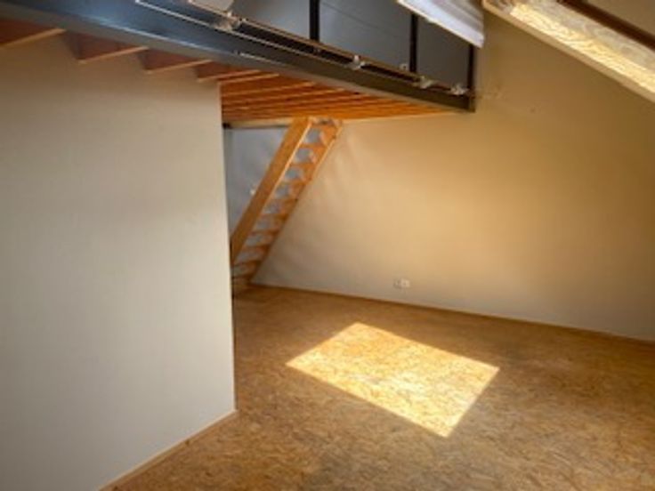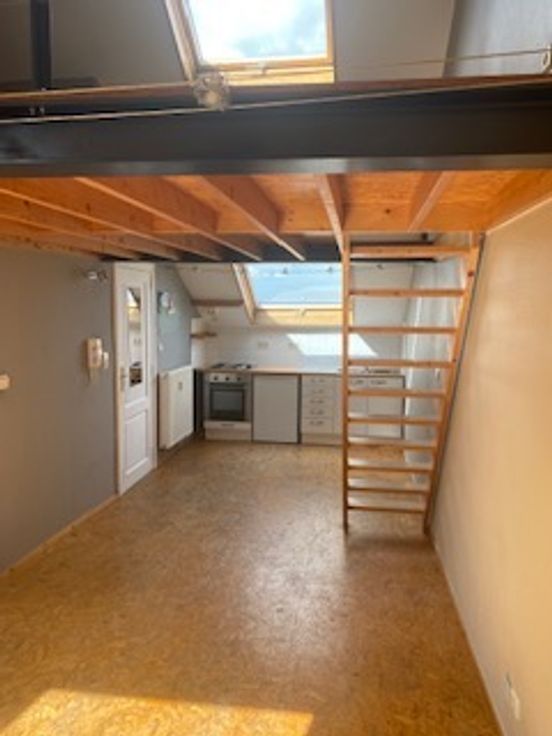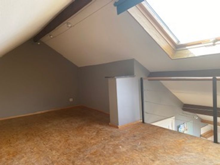 AU coeur d'Arlon, à 3 minutes du piétonnier et de la gare, appartement en duplex. Séjour, cuisine et salle de bain en niveau inférieur, espace chambre en mezzanine. Très lumineux et très calme, avec vue imprenable sur le clocher de Saint Martin.