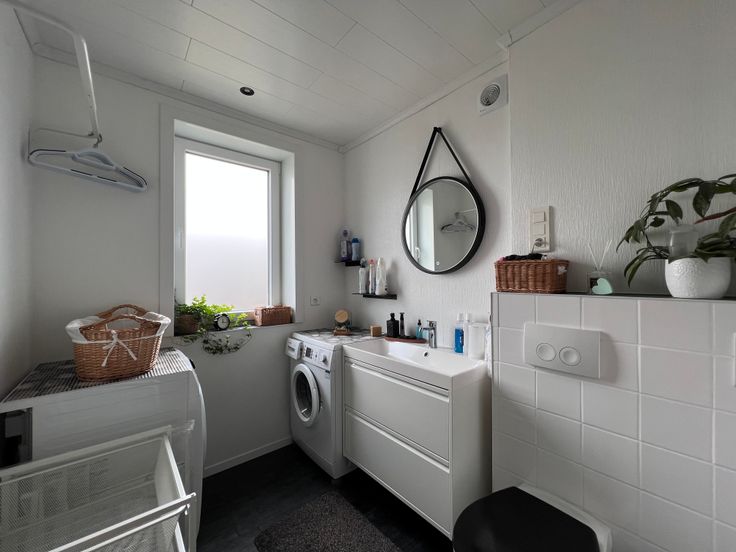 Premier étage : Un hall desservant deux belles chambres, une buanderie pratique pour votre confort quotidien, ainsi qu'une salle de bain complète.