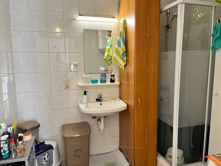 - indeling: Inkomhal met apart toilet, open ruimte waarin zit-en eethoek met keuken. Aparte badkamer met lavabo, douche en boiler. Er is een aparte ruimte die momenteel dienst doet als slaapkamer.
