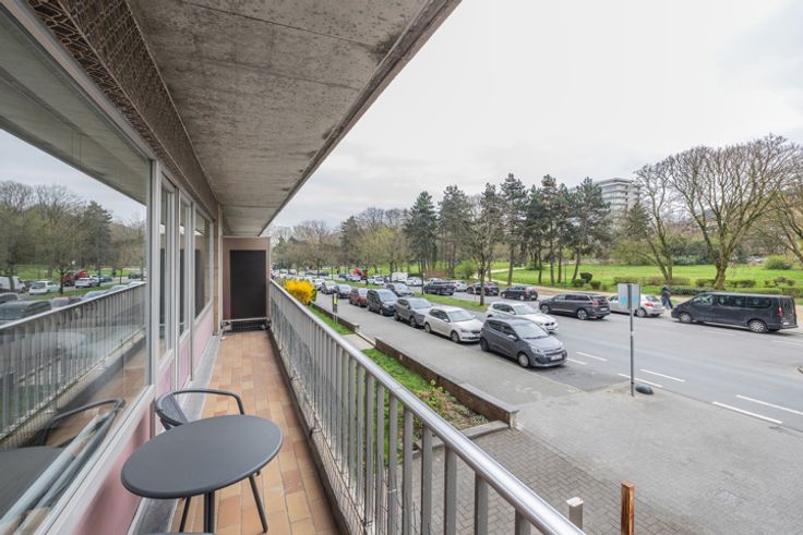Te koop Edmond Machtens, 2-slaapkamer appartement, terras, garagebox