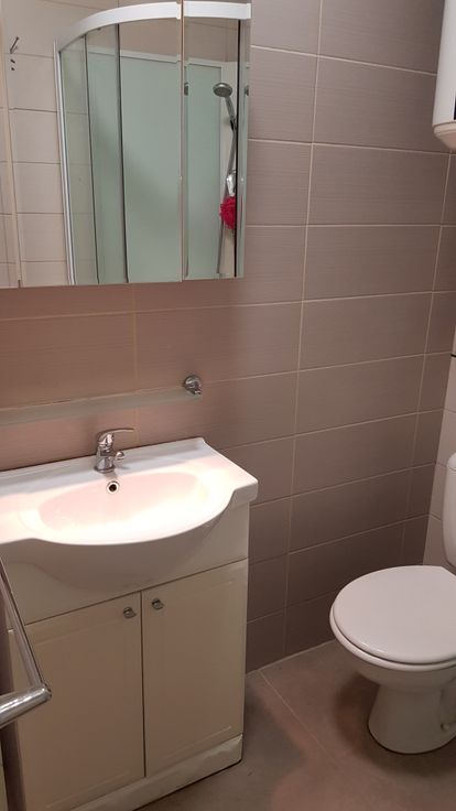 Het bestaat uit een leefruimte, ingerichte keuken met mogelijkheid tot installatie van een wasmachine, 1 badkamer met WC, badkamermeubel en douche en aparte slaapkamer.