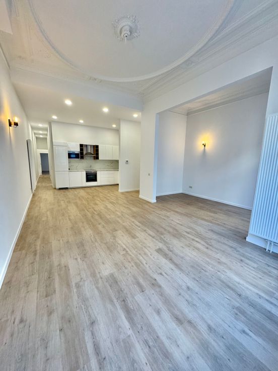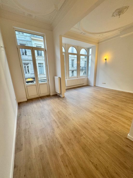 Superbe Appartement 2 Chambres lumineux entièrement rénové (1ère Occupation) de +/- 135M2 localisé en plein coeur du quartier Dansaert à proximité immédiate de la place Sainte-Catherine & de la rue de Flandre.