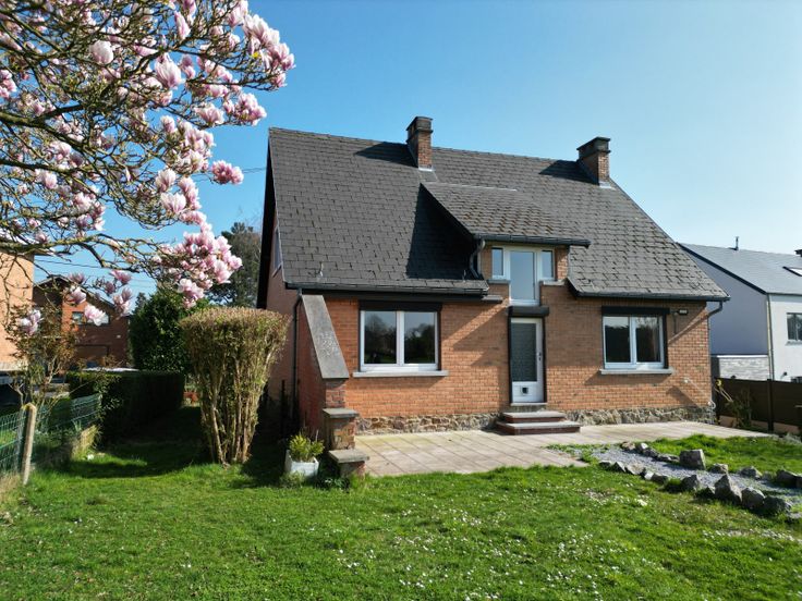 Zicht: Losgemaakt . Grond: Gelamineerde bevloering, Betegelen . Dakwerk: Leien . Vensters: PVC . Andere uitrusting: Zonnetent, Blinden, Waterafvoersystemen, Dubbele beglazing, Schoorsteen . Uitrusting van keuken: Wasemkap, Oven, Gas fornuis . Grond:, 1, Afrasteerd, Gehesen, Tuin, . : Total énergie primaire: 96276 kwh/an, EPC certificaat nb., : 464 Kwh . Verschillende kamers: 1 Garage(s) . Kelderverdieping: Kelder . Eerste verdieping: Badkamer(s), Trapportaal, 3 Slaapkamer . Gelijkvloers:, Kantoren, Keuken, Woonkamer, Inkomhal . :