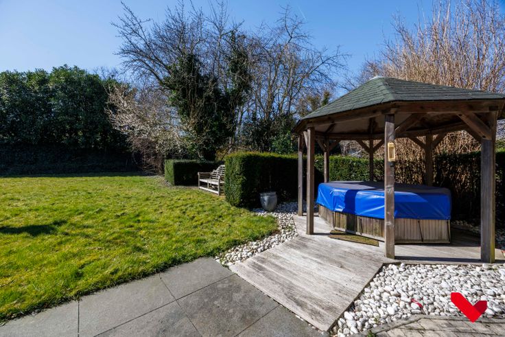 Buiten wacht een zonnige, zuidwest-gerichte tuin met jacuzzi: een plek van rust en discretie. Met een dubbele inpandige garage, kelder en EPC B combineert dit pand comfort, uitstraling en functionele troeven.