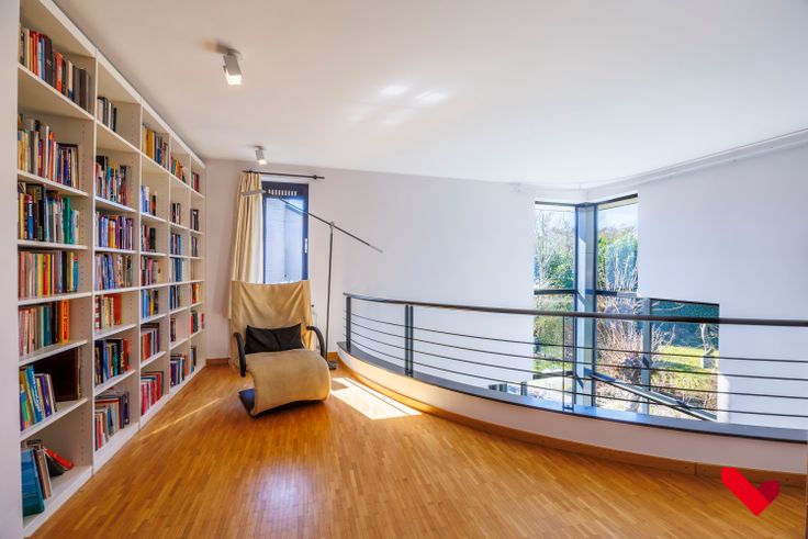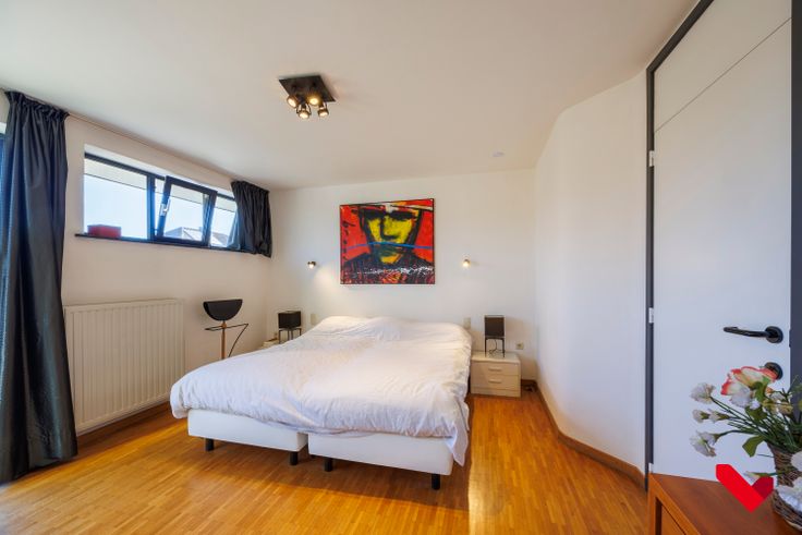 De zolderverdieping is volledig afgewerkt en biedt ruimte voor een atelier, werkplek of hobbyruimte. Dankzij de dubbele toegang leent de woning zich uitstekend voor een vrij beroep of kantoor aan huis.